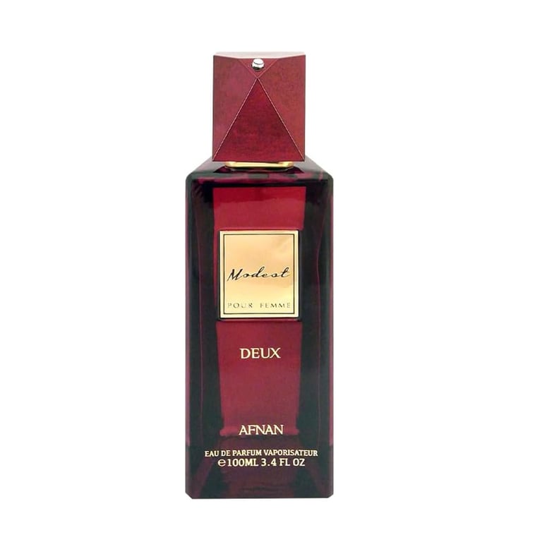 Modest Deux EDP von Afnan ist ein jugendlicher und süchtig machender Duft, der zur olfaktorischen Familie floral-fruchtig-gourmand gehört. Mit einer bezaubernden Mischung aus roten Früchten, zarten Blumen und einem cremigen Hintergrund zeichnet sich dieser Duft durch ausgewogene und umhüllende Süße aus.
