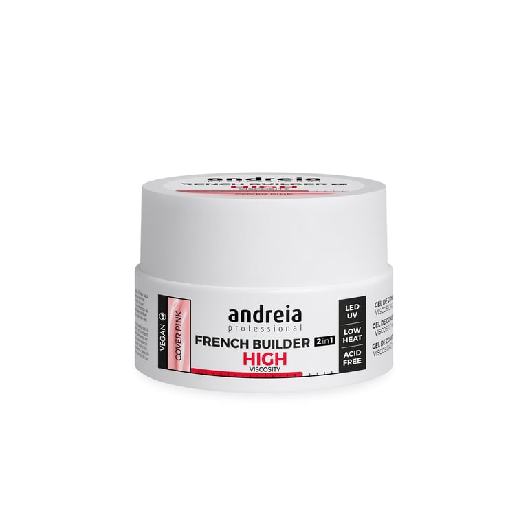 Avec ce gel de construction français blanc d'Andreia, vous pourrez obtenir une manucure française impeccable en combinant base et construction en un seul produit à haute viscosité et finition professionnelle, tout en profitant de sa formule vegan sans acides et de son effet autonivelant, compatible avec lampes LED et UV, qui évite la sensation de chaleur pendant le séchage.