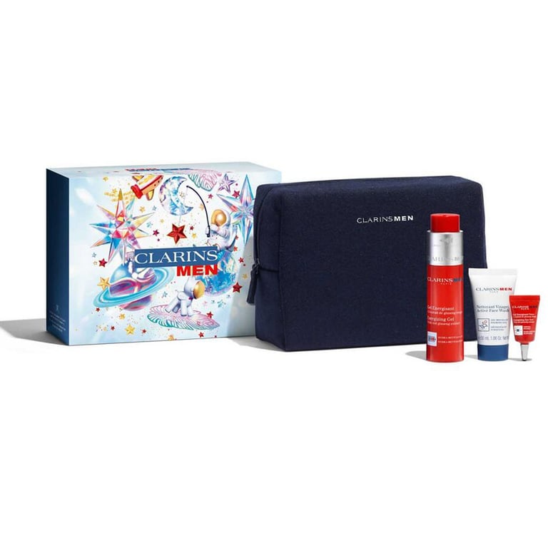 Energieset für Männer, das die Haut reinigt, hydratisiert und revitalisiert, Anzeichen von Müdigkeit und Augenringe reduziert.