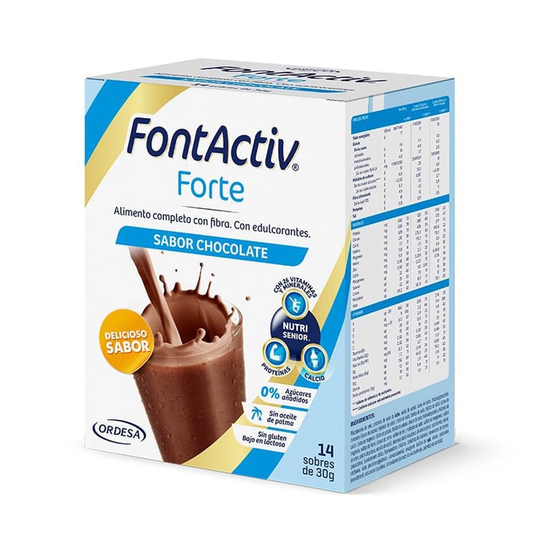 FontActive Forte ist ein Nahrungsergänzungsmittel mit Ballaststoffen, 13 Vitaminen und 11 Mineralstoffe, das speziell zur Ergänzung der Ernährung von Erwachsenen entwickelt wurde. Schokoladen- oder Vanillegeschmack.