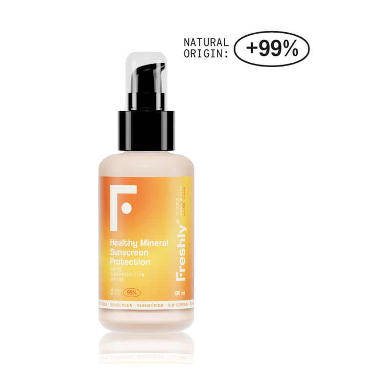 Mineral Sunscreen Protection SPF50+ ist ein zu 100 % natürlicher Gesichts- und Körpersonnenschutz, formuliert von Freshly Cosmetics. Seine Formel enthält nicht-nano Zinkoxid als physikalischen Filter, der eine schützende Barriere auf der Haut bildet, um die UVA- und UVB-Strahlen zu reflektieren. Im Gegensatz zu chemischen Filtern dringt dieser mineralische Schutz nicht in die Haut ein, was ihn zu einer sicheren Option macht, die empfindliche Haut respektiert und für die ganze Familie geeignet ist, einschließlich Kinder und Schwangere. Außerdem ist er mit antioxidativen Inhaltsstoffen wie Astaxanthin, Preiselbeere und rotem Reisextrakt angereichert, die vor oxidativem Stress durch Sonneneinstrahlung schützen. Seine leichte, schnell einziehende Textur hinterlässt keinen weißen Rückstand und kein fettiges Gefühl, wodurch eine komfortable Anwendung auch bei fettiger oder gemischter Haut möglich ist. Er ist wasserfest, nicht komedogen und völlig marinefreundlich, frei von Silikonen, Parabenen und Nanopartikeln. Ideal für den täglichen Gebrauch als Teil der täglichen Gesichtsroutine, bietet er wirksamen und gesunden Schutz vor der Sonne, verhindert Fotoalterung, Flecken und andere Sonnenschäden.
