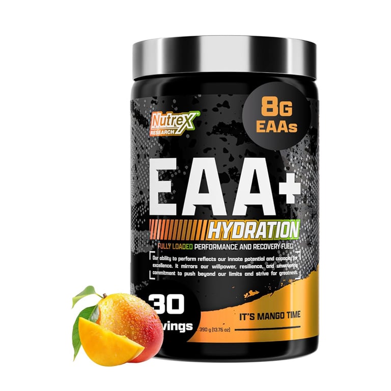 EAA + Hydration 390 g von Nutrex ist ein Pulversupplement, das eine vollständige Mischung aus essentiellen Aminosäuren (EAAs) zusammen mit Elektrolyten und Komponenten zur Unterstützung der Hydration bietet. Es ist formuliert für alle, die intensiv trainieren und Energie, Erholung sowie das körperliche Gleichgewicht aufrechterhalten möchten.