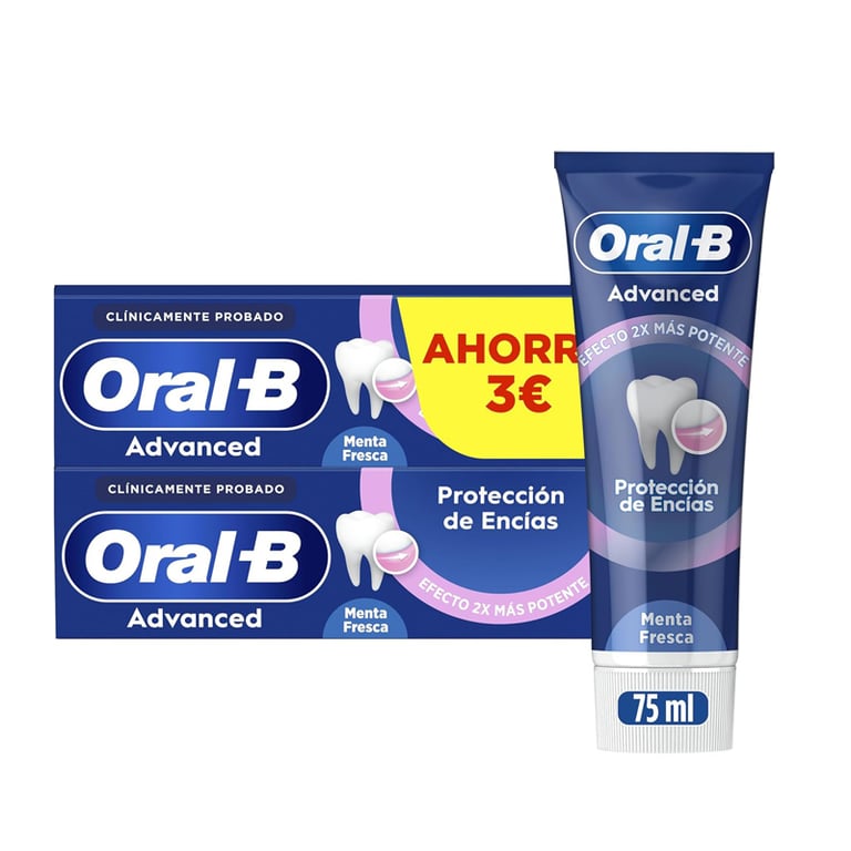 Packung mit zwei Zahnpasten, die für die Gesundheit des Zahnfleisches entwickelt wurden. Ihre fortschrittliche Formel hilft, Empfindlichkeit zu beruhigen und stärkt die Barriere gegen bakteriellen Plaque.