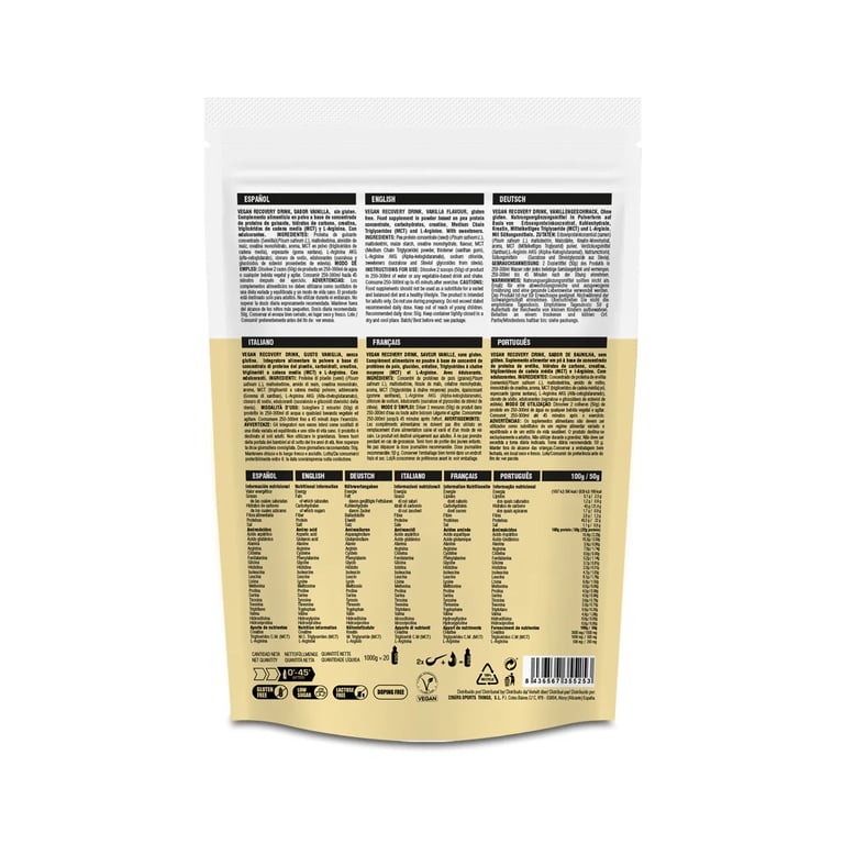 226ERS VEGAN RECOVERY DRINK es la solución perfecta para la recuperación post-entrenamiento diseñada específicamente para deportistas veganos. Esta innovadora bebida recuperadora combina ingredientes 100% vegetales con la máxima eficacia nutricional.