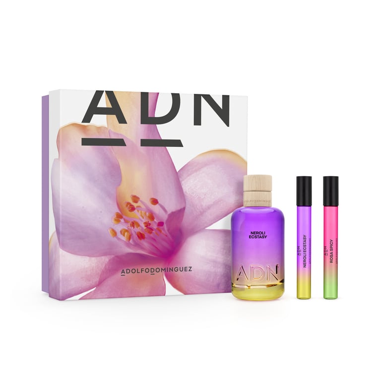 El Set ADN Neroli Ecstasy EDP 100 ml es un pack cuidadosamente diseñado para ofrecer una experiencia olfativa completa, envolvente y refinada. Pensado para amantes de las fragancias que buscan versatilidad y personalidad en cada aplicación, este set combina el aroma emblemático del neroli con notas frescas, especiadas y sensoriales que acompañan tanto la rutina diaria como los momentos especiales. Su objetivo es aportar equilibrio, elegancia y una presencia reconocible gracias a la combinación de tres formatos complementarios que se adaptan a distintos estilos de vida: uno para disfrutar en casa, otro perfecto para llevar siempre contigo y un tercero que añade un matiz más atrevido y picante para quienes desean jugar con capas aromáticas y sensaciones únicas.