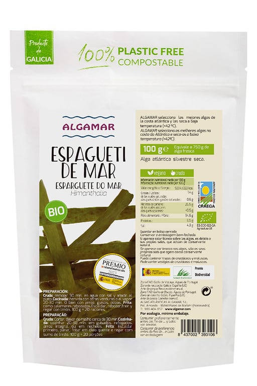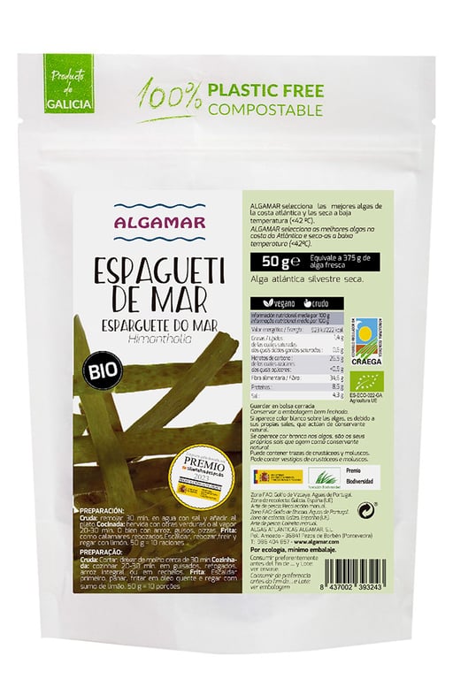 Descubre los innovadores espaguetis de mar Algamar, una alternativa revolucionaria a la pasta tradicional que combina lo mejor del mar y la tierra. Elaborados artesanalmente en las montañas gallegas con agua de manantial y procesados a baja temperatura para preservar todos sus nutrientes.