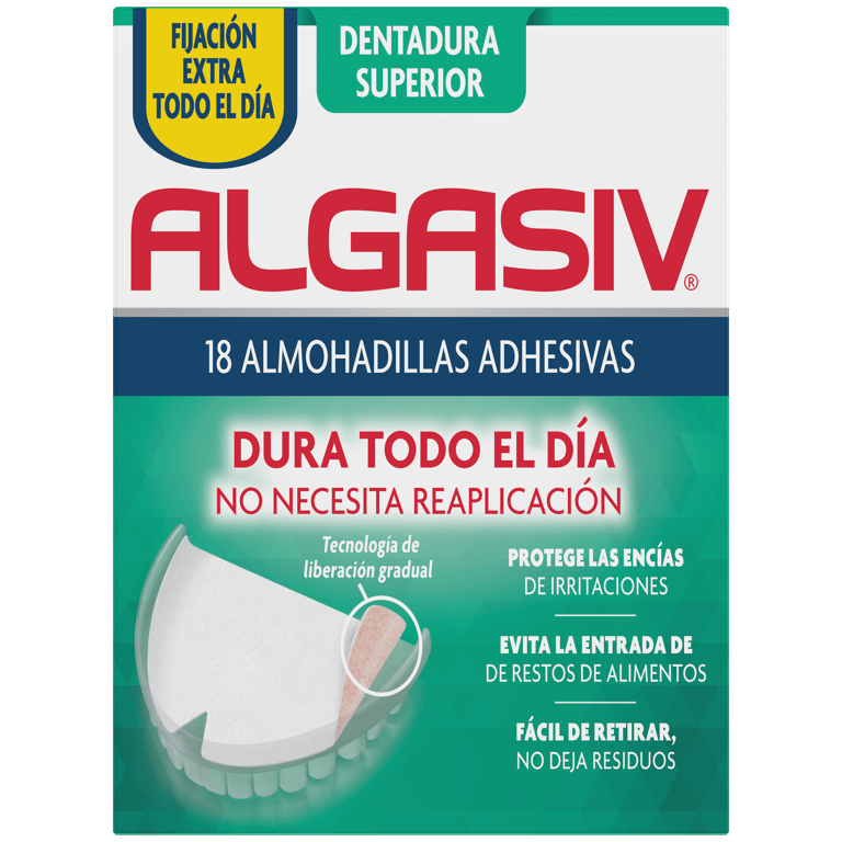 Para una sujeción completa puedes combinar Algasiv Almohadillas Adhesivas Dentadura Superior con [product 10129]Algasiv Almohadillas Adhesivas Dentadura Inferior[/product].