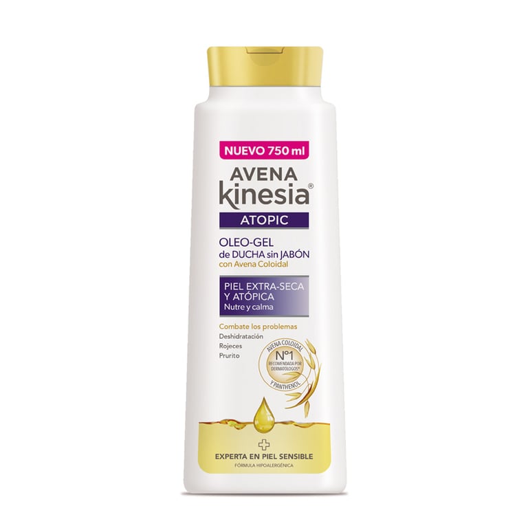 Gel de baño con aceite de avena 100% natural, que ayuda a combatir la deshidratación, las rojeces y el prurito.