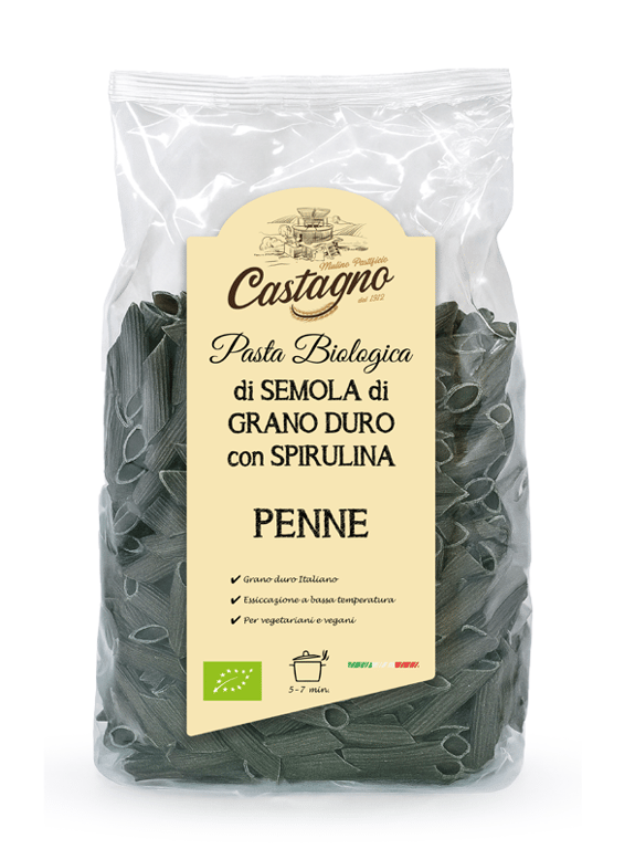 Descubre la pasta Castagno Bruno Espiral de Trigo con Espirulina Ecológica, una deliciosa fusión entre la tradición italiana y la innovación nutricional. Elaborada con sémola de trigo duro 100% italiana de la más alta calidad, esta pasta se enriquece con un 1,9% de espirulina, un superalimento marino reconocido por su excepcional valor nutritivo.