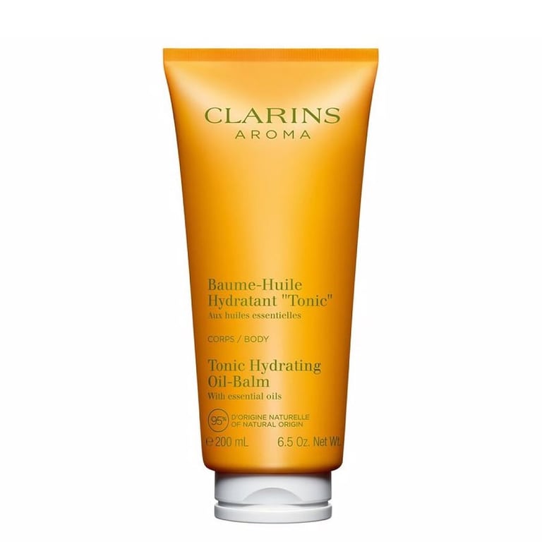 Baume-Huile Hydratant Tonic 200 ml de Clarins es un lujoso bálsamo corporal hidratante diseñado para revitalizar tanto la piel como la mente. Este innovador producto combina extractos vegetales nutritivos con aceites esenciales tonificantes para ofrecer una experiencia de cuidado corporal única. Su textura de bálsamo fundente se transforma en un aceite suave al aplicarlo, brindando una hidratación intensa y dejando la piel increíblemente suave. Con un impresionante 95% de ingredientes de origen natural, es adecuado para todos los tipos de piel, incluyendo mixta, seca, normal y grasa.