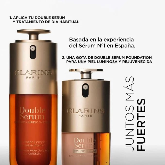 Bienvenida a la nueva era de las bases de maquillaje con Clarins Double Serum Foundation. Esta revolucionaria fórmula representa un antes y un después en el mundo de la cosmética, siendo la primera doble fórmula que combina maquillaje y tratamiento antiedad en un solo producto.