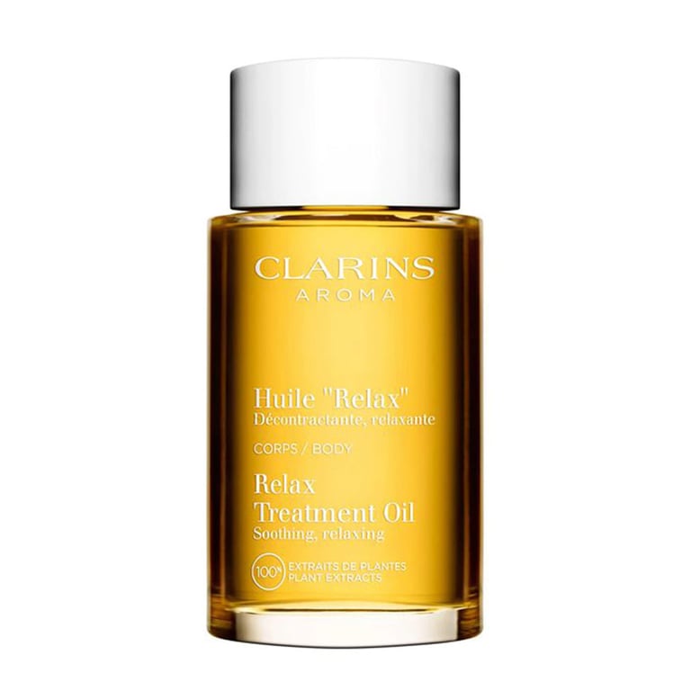 Huile Relax Décontractante Relaxante 100 ml de Clarins es un lujoso aceite corporal diseñado para proporcionar una experiencia de relajación y bienestar incomparables. Esta fórmula excepcional, enriquecida con un 100% de puros extractos de plantas, incluyendo geranio, naranjo amargo, manzanilla y albahaca, está diseñada para aliviar el estrés y la fatiga acumulados en el cuerpo y la mente.