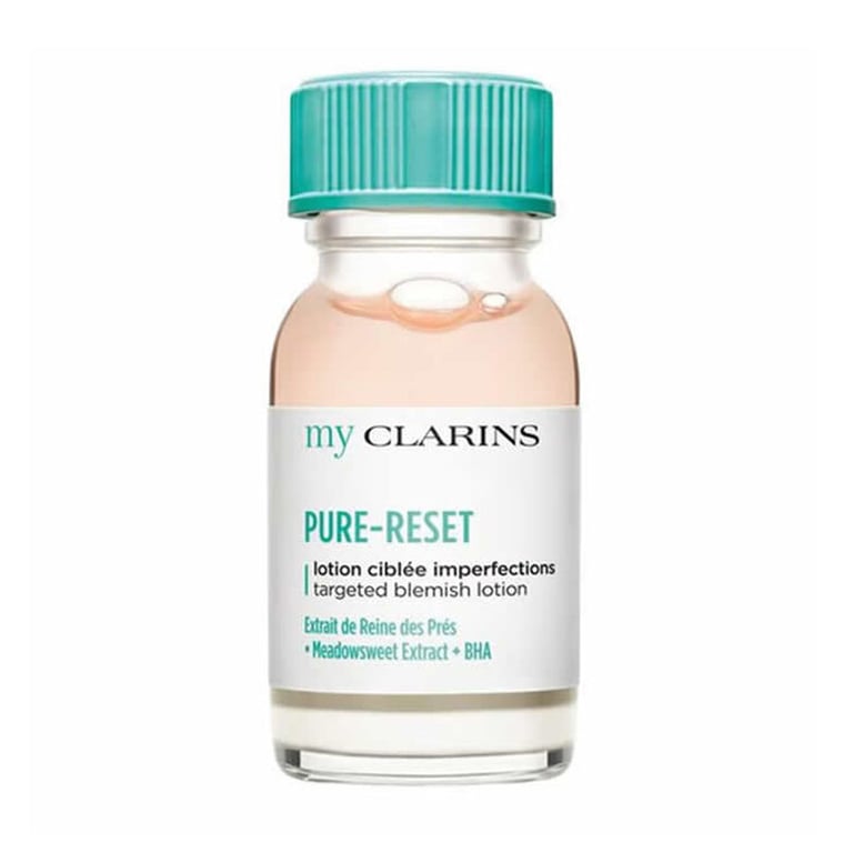 La Loción Ciblée Imperfections de My Clarins es un tratamiento nocturno diseñado específicamente para combatir las imperfecciones de la piel. Su fórmula única está enriquecida con extracto de reina de los prados, una planta bio conocida por sus propiedades purificantes que regulan la producción de sebo, y ácido salicílico, que ayuda a combatir la apariencia de las imperfecciones.