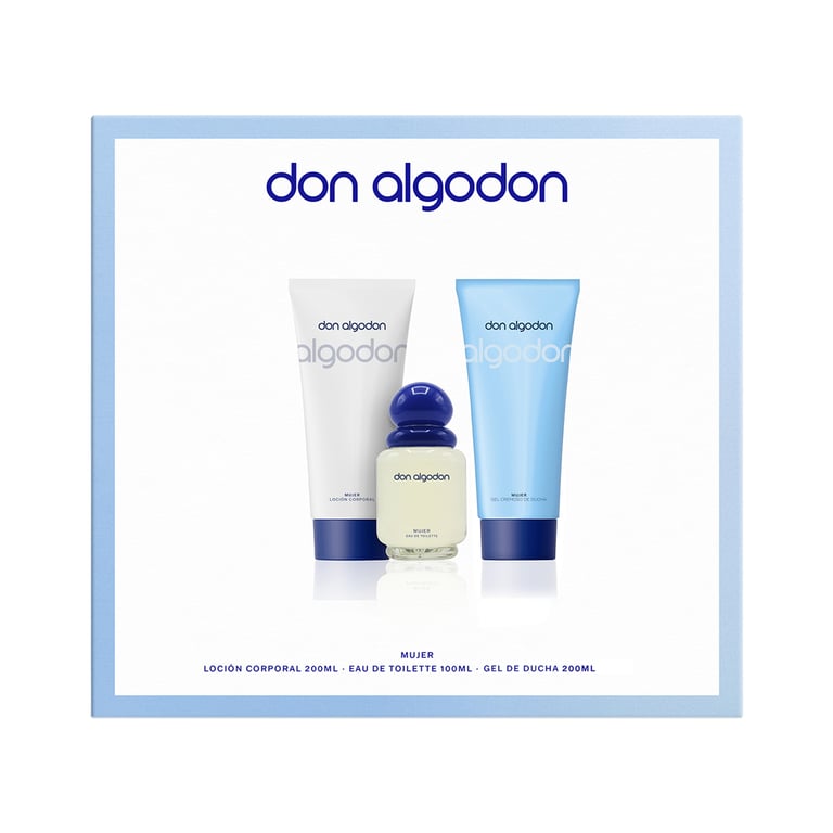 El Set Don Algodón Mujer EDT 100 ml es un elegante pack de fragancia y cuidado corporal diseñado para mujeres que disfrutan de la frescura, la suavidad y la feminidad en su día a día. Este conjunto combina la icónica fragancia de Don Algodón, conocida por su aroma delicado, limpio y envolvente, con productos que miman la piel y aportan una experiencia sensorial completa. Ideal para uso diario o como regalo, este set ofrece un ritual completo de belleza que hidrata, perfuma y deja una sensación duradera de bienestar y confort.