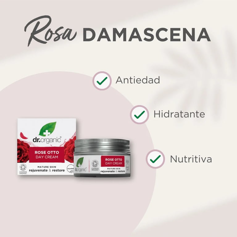 Aqua, Jugo de hoja de Aloe barbadensis en polvo†, Triglicérido caprílico/cáprico, Alcohol cetearílico, Caprilato de coco, Estearato de glicerilo, Glicerina, Glucósido de cetearilo, Mantequilla de Butyrospermum parkii (Karité)†, *Aceite de flor de Rosa Damascena (Activo Clave: Rose Otto)†, Extracto de flor de Rosa Damascena†, Extracto de flor de Calendula officinalis†, Extracto de flor de Chamomilla recutita (Matricaria)†, Extracto de Passiflora incarnata (Pasiflora)†, Extracto de flor de Tilia cordata (Tilo)†, Aceite de germen de Triticum vulgare (Trigo), Borago officinalis (Borraja), Ácido salicílico, Tocoferol, Polvo de Chondrus crispus, Estearoil glutamato de sodio, Goma xantana, Perfume, Ácido cítrico, Fitato de sodio, Deshidroacetato de sodio, Ácido sórbico, Sorbato de potasio, Alcohol bencílico, Citronelol, Geraniol. **† Orgánico certificado, 21% orgánico, 98% de origen natural.