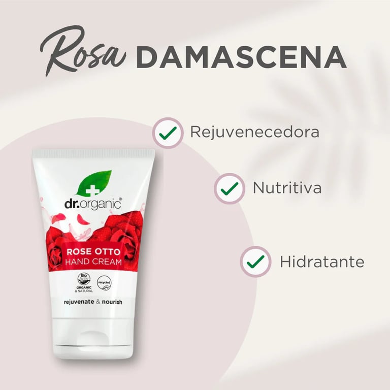 Experimenta el cuidado intensivo que tus manos merecen con la Crema de Manos y Uñas Rosa Damascena de Dr. Organic. Esta fórmula premium combina la elegancia de la Rosa Damascena orgánica con ingredientes nutritivos de primera calidad para brindar una hidratación profunda y duradera.