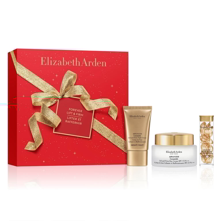 El Set Advanced Ceramide Lift and Firm Day Cream SPF 15 de Elizabeth Arden es un completo pack de cuidado facial diseñado para hidratar, reafirmar y proteger la piel durante todo el día y la noche. Este set combina la potencia de los sérums concentrados con las cremas de día y noche enriquecidas con ceramidas, que ayudan a restaurar la barrera natural de la piel, mejorar la elasticidad y reducir la apariencia de líneas de expresión y arrugas. Es ideal para pieles maduras que buscan un tratamiento integral y resultados visibles.