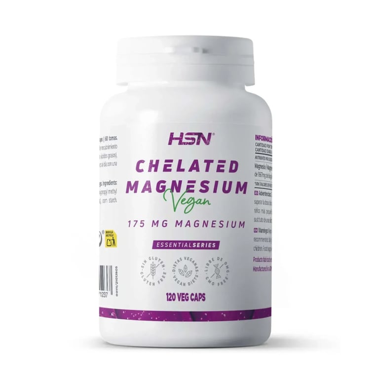 El Bisglicinato de Magnesio 120 Vcaps de HSN es un complemento alimenticio que ofrece una forma altamente biodisponible de magnesio en cápsulas vegetales. Cada cápsula contiene 175 mg de magnesio elemental, lo que proporciona una dosis diaria de 350 mg, alcanzando así el 93% de los valores de referencia de nutrientes recomendados.