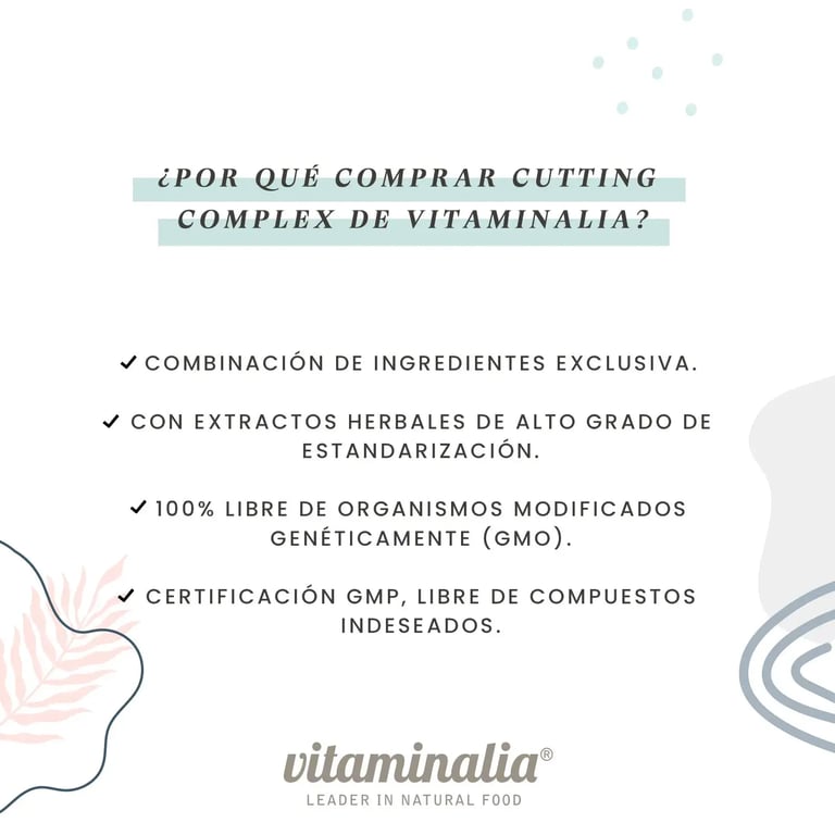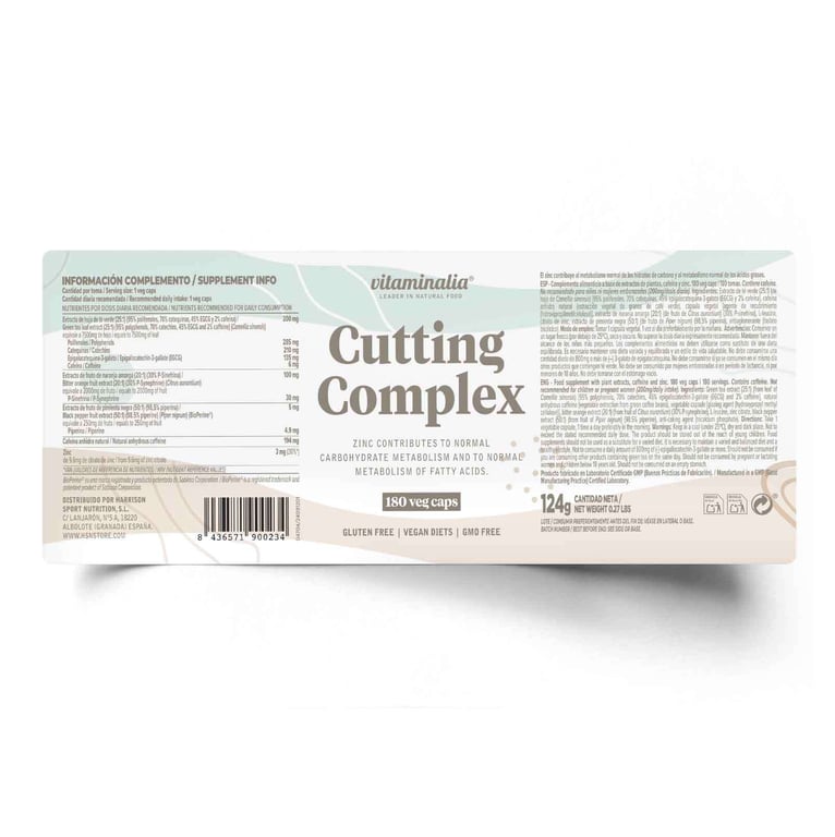 CUTTING COMPLEX de Vitaminalia es un suplemento dietético revolucionario en cápsulas vegetales, especialmente formulado para aquellas personas que buscan reducir grasa corporal y acelerar su metabolismo de forma natural y efectiva.