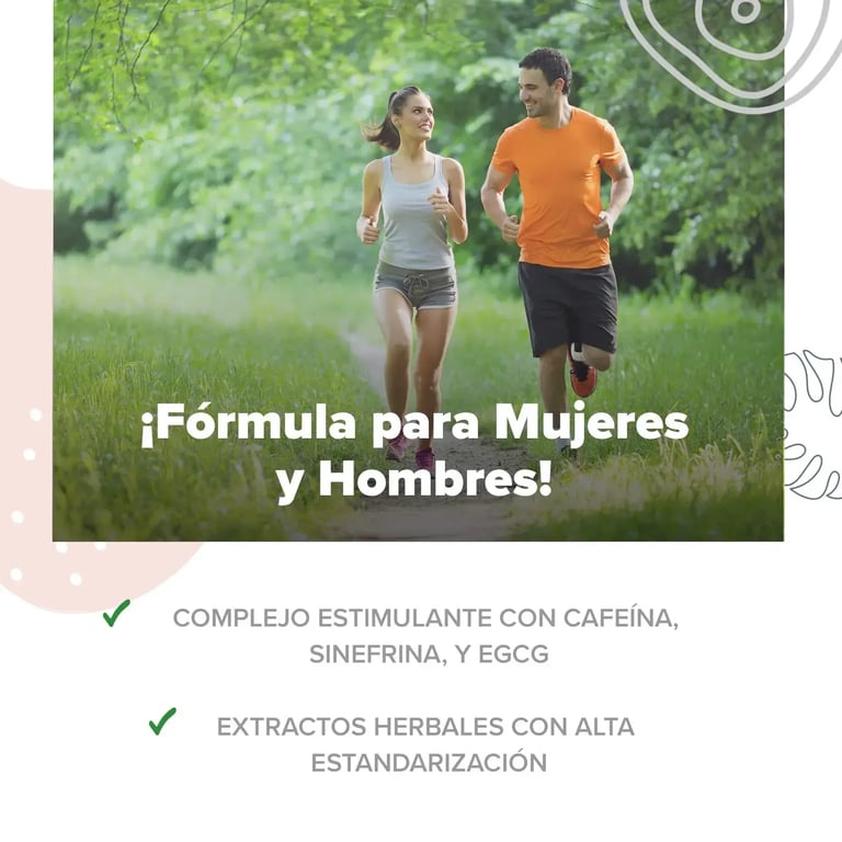 [{"name":"Extracto de Té Verde","percentage":"300mg","description":"Ayuda a aumentar la oxidación de ácidos grasos y reducir la grasa corporal."},{"name":"Cafeína","percentage":"200mg","description":"Estimula la tasa metabólica y el gasto energético."},{"name":"Extracto de Naranja Amarga","percentage":"100mg","description":"Apoya el metabolismo de lípidos."},{"name":"Zinc","percentage":"3mg","description":"Contribuye al metabolismo normal de carbohidratos y ácidos grasos."}]