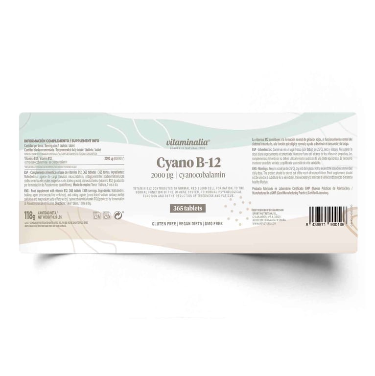 Descubre la potencia de Vitaminalia VITAMINA B12 (CIANOCOBALAMINA) 2000 mcg, el suplemento esencial diseñado especialmente para veganos y vegetarianos que buscan una nutrición completa y equilibrada.
