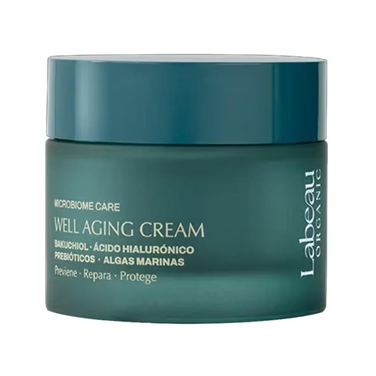 La Crema Well Aging de Labeau Organic es un avanzado tratamiento desarrollado con una profunda consideración por la naturaleza y la salud de la piel. Con un enfoque en la pureza y la eficacia, este producto ofrece una fórmula altamente natural, con un 98% de ingredientes provenientes de la naturaleza. Al combinar poderosos prebióticos, bakuchiol, ácido hialurónico y algas marinas, esta crema rejuvenecedora proporciona una solución integral para prevenir, reparar y proteger la piel contra los signos del envejecimiento y los factores ambientales dañinos.