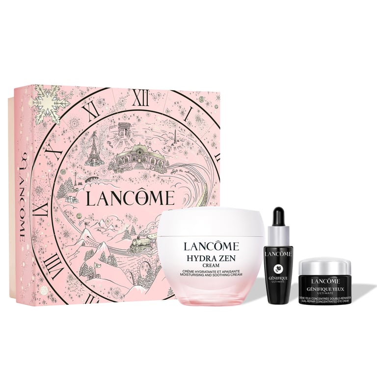 El Set Hydra Zen Cream de Lancôme es un pack de cuidado facial diseñado para proporcionar una hidratación intensa y calmar la piel sensible o estresada. Esta colección completa combina texturas ligeras y eficaces que ayudan a mantener la piel suave, radiante y equilibrada, ofreciendo una sensación de frescura y bienestar desde la primera aplicación. Ideal para quienes buscan un cuidado diario completo que reduzca la sensación de tirantez y mejore la luminosidad natural del rostro, con un enfoque en confort y protección frente al estrés ambiental.
