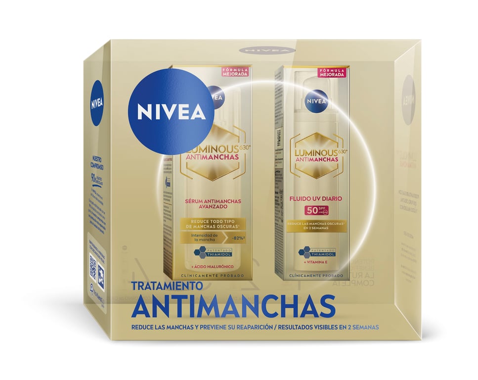 El Pack Luminous Sérum y Creme De Día SPF50 es la solución completa para cuidar la piel, combatir manchas y protegerla frente a los daños solares diarios. Formulado con activos despigmentantes y antioxidantes, este pack ayuda a unificar el tono de la piel, aportando luminosidad y protección intensa. Ideal para quienes buscan mantener un rostro radiante, hidratado y protegido, combinando eficacia antiedad con cuidado diario. Su textura ligera y de rápida absorción garantiza una experiencia agradable, dejando la piel suave, luminosa y perfectamente preparada para el día.