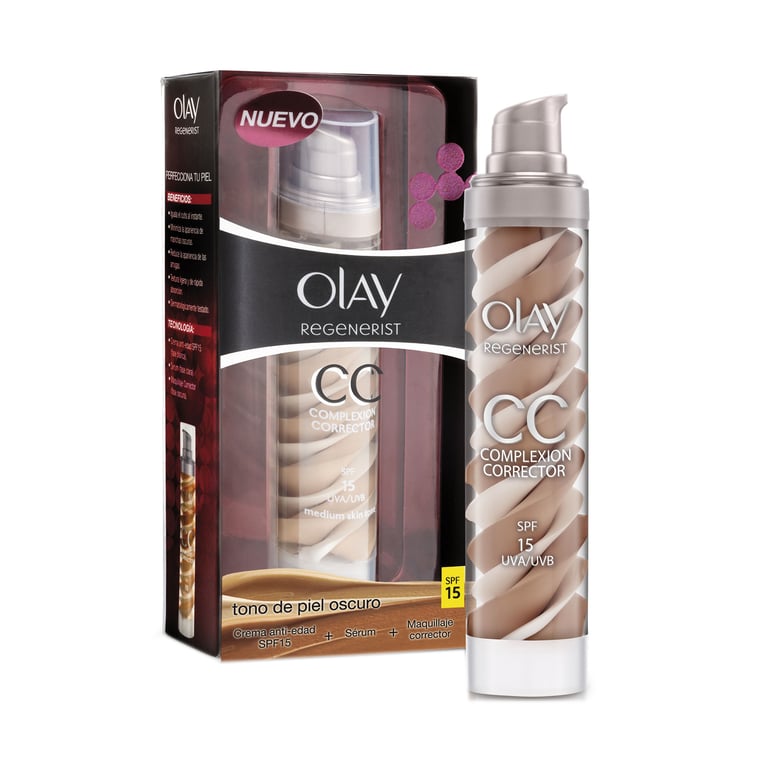 Regenerist CC Cream de Olay. Crema CC con protección SPF15 que corrige el tono de la piel a la vez que ejerce su poder de tratamiento hidratante y antienvejecimiento.