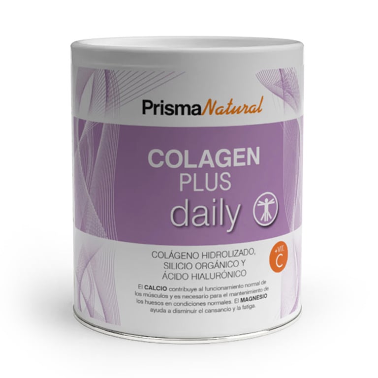 Colagen Plus Daily de Prisma Natural es un complemento elaborado a base de colágeno marino hidrolizado, reforzado con calcio, magnesio, vitamina C, e ingredientes que contribuyen al cuidado de los huesos, cartílagos y piel:
