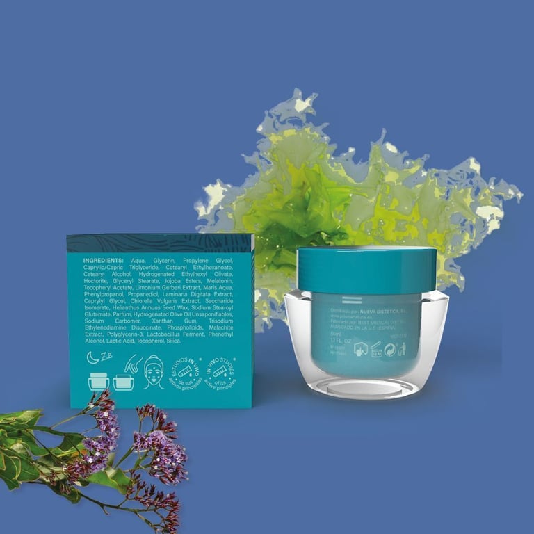 AQUA, GLYCERIN, PROPYLENE GLYCOL, CAPRYLIC/CAPRIC TRIGLYCERIDE, CETEARYL ETHYLHEXANOATE, CETEARYL ALCOHOL, HYDROGENATED ETHYLHEXYL OLIVATE HECTORITE, GLYCERYL STEARATE, JOJOBA ESTERS, MELATONIN, TOCOPHERYL ACETATE, LIMONIUM GERBERI EXTRACT, MARIS AQUA, PHENY/PROPANOL, PROPANEDIOL, LAMINARIA DIGITATA EXTRACT*, CAPRYLYL GLYCOL, CHLORELLA VULGARIS EXTRACT*, SACCHARIDE ISOMERATE*, HELIANTHUS ANNUUS SEED WAX, SODIUM STEAROYL GLUTAMATE, PARFUM, HYDROGENATED OLIVE OIL UNSAPONIFIABLES, SODIUM CARBOMER, XANTHAN GUM, TRISODIUM ETHYLENEDIAMINE DISUCCINATE, PHOSPHOLIPIDS, MALACHITE EXTRACT, POLYGLYCERIN-3, LACTOBACILLUS FERMENT, PHENETHYL ALCOHOL, LACTIC ACID, TOCOPHEROL.