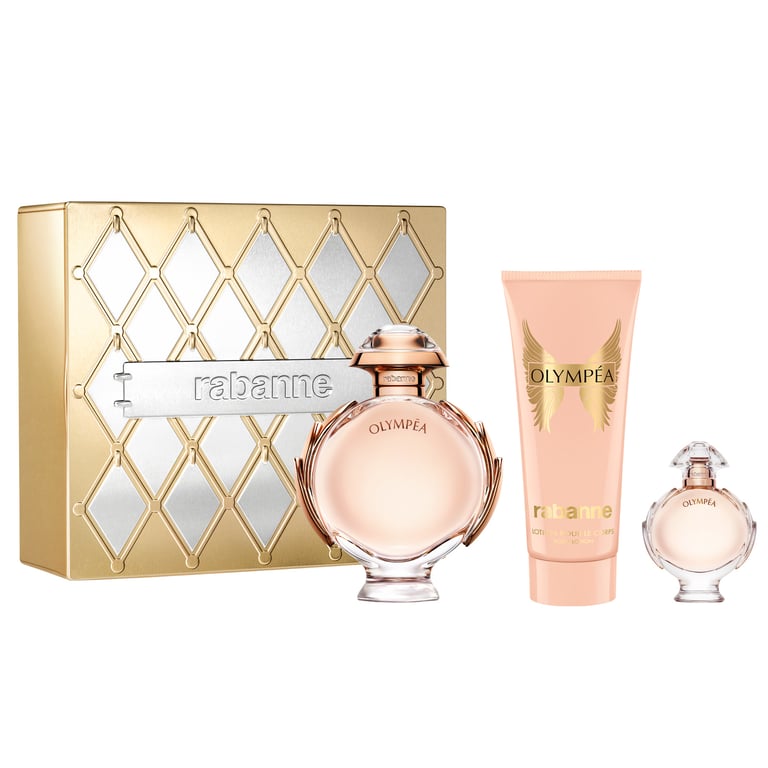 Olympea EDP 80 ml + EDP 6 ml + Loción Corporal 100 ml es un elegante set de regalo de la firma Rabanne, pensado para mujeres que desean llevar la esencia de la diosa moderna consigo en todo momento. Inspirado en la fuerza, sensualidad y poder femenino, este pack combina la icónica fragancia Olympea con una loción corporal perfumada y una versión mini ideal para el bolso. Perfecto tanto para regalar como para disfrutar de una experiencia de belleza completa, este trío envuelve la piel en una estela irresistible, salada y floral.