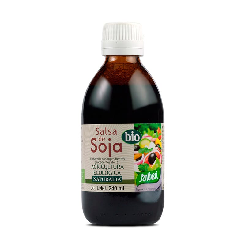 La Salsa de Soja Bio de Santiveri es un condimento oriental vegetal, a base de soja, que constituye con ventaja a los condimentos habituales para aromatizar ensaladas, pastas, pescados y carnes.