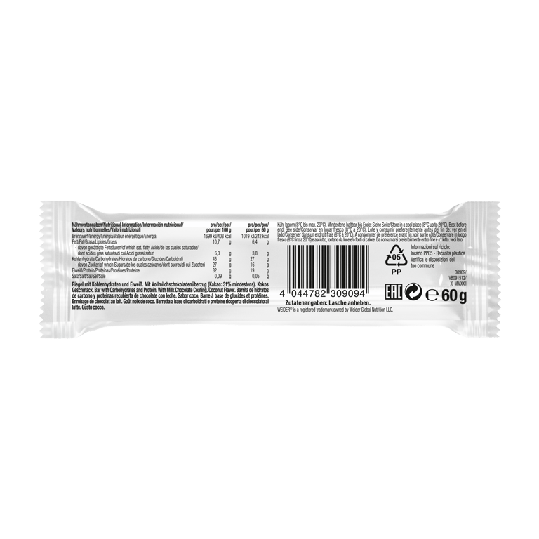 Las barritas 32 % Protein Bar de Weider son ideales para todas aquellas personas que buscan cubrir los requerimientos diarios de proteína, con un producto saludable, especialmente para las personas que practican deporte.