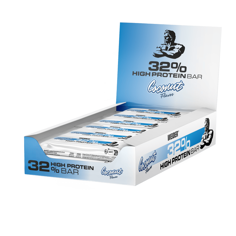 32 % Protein Bar de Weider son deliciosas barritas con un elevado aporte de proteínas, lo que las hace ideales para ayudar a cubrir tus requerimientos diarios, especialmente para aquellas personas que realizan deporte.