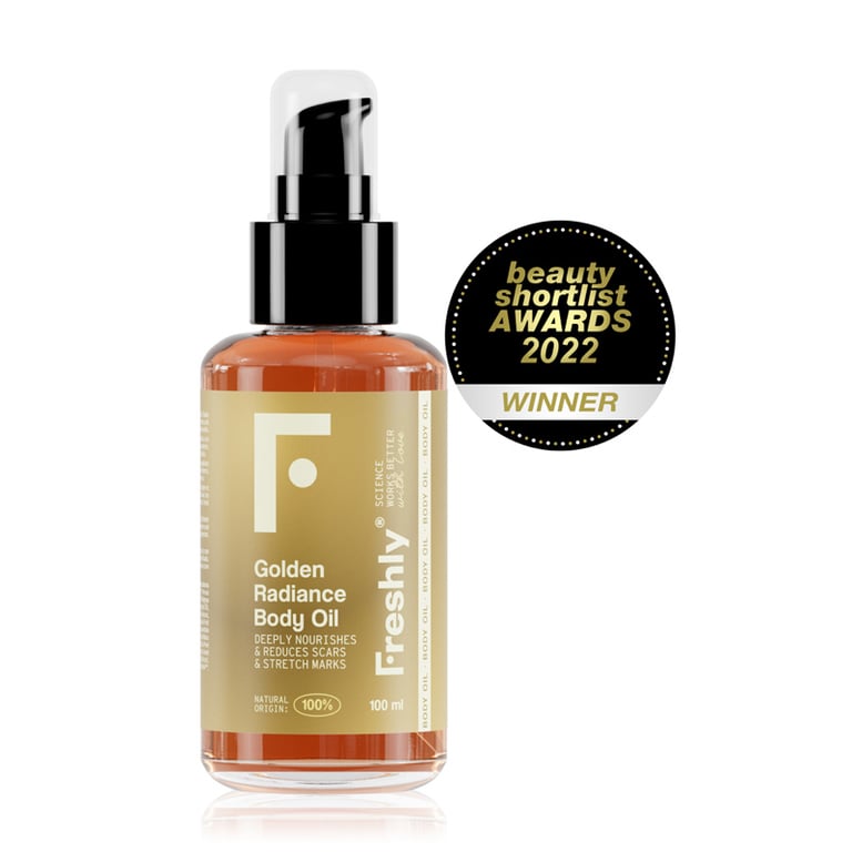 Grâce à sa rapide absorption, l'Huile Corporelle Golden Radiance est idéale pour tous les types de peau, même les plus sensibles ou sujettes à l'eczéma. Son parfum délicat naturel de pamplemousse, bergamote, mandarine, ananas, lavande, rose musquée et santal blanc offre une expérience sensorielle unique. Cette huile corporelle non seulement améliore l'esthétique de la peau, mais renforce également ses fonctions naturelles, la maintenant protégée, réparée et hydratée à long terme. Essayez-la et profitez d'une peau plus saine, lumineuse et radieuse, comme l'ont fait des milliers d'utilisateurs qui en ont fait un best-seller de Freshly Cosmetics.