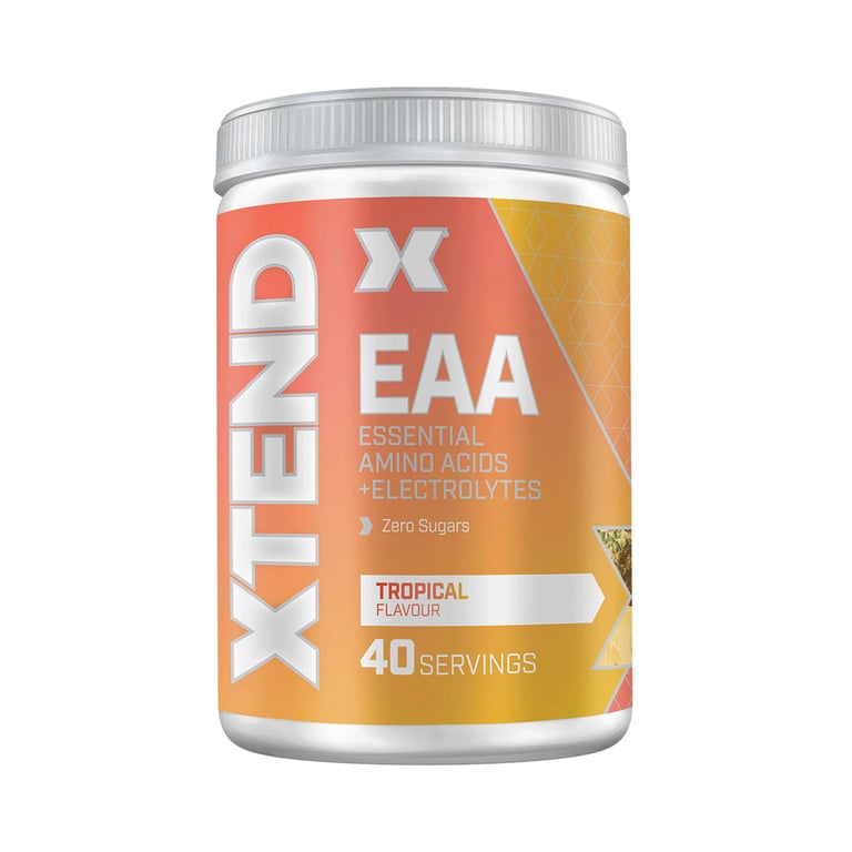 Xtend EAA + Electrolytes de Scivation est une boisson en poudre qui mélange les neuf acides aminés essentiels avec des électrolytes, sans sucres ajoutés. Elle est formulée pour hydrater et nourrir pendant des séances d'exercice intenses.