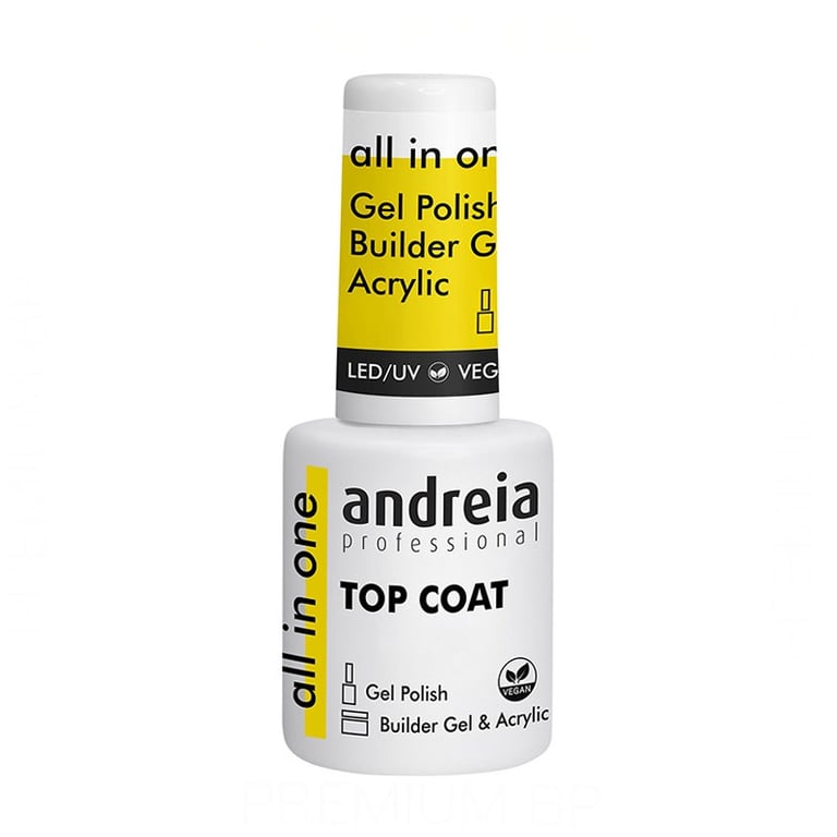 Questo top coat tutto in uno di Andreia Professional offre una finitura brillante e durevole che rafforza la flessibilità naturale dell'unghia mentre protegge dalla decolorazione grazie al filtro UV incorporato, adattandosi a smalto semipermanente, gel costruttore o acrilico per ottenere una manicure professionale impeccabile e di lunga durata.