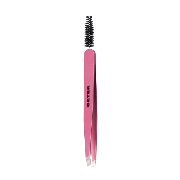 Combina una pinza di precisione con un spazzolino per pettinare e definire le sopracciglia in modo semplice ed efficace.