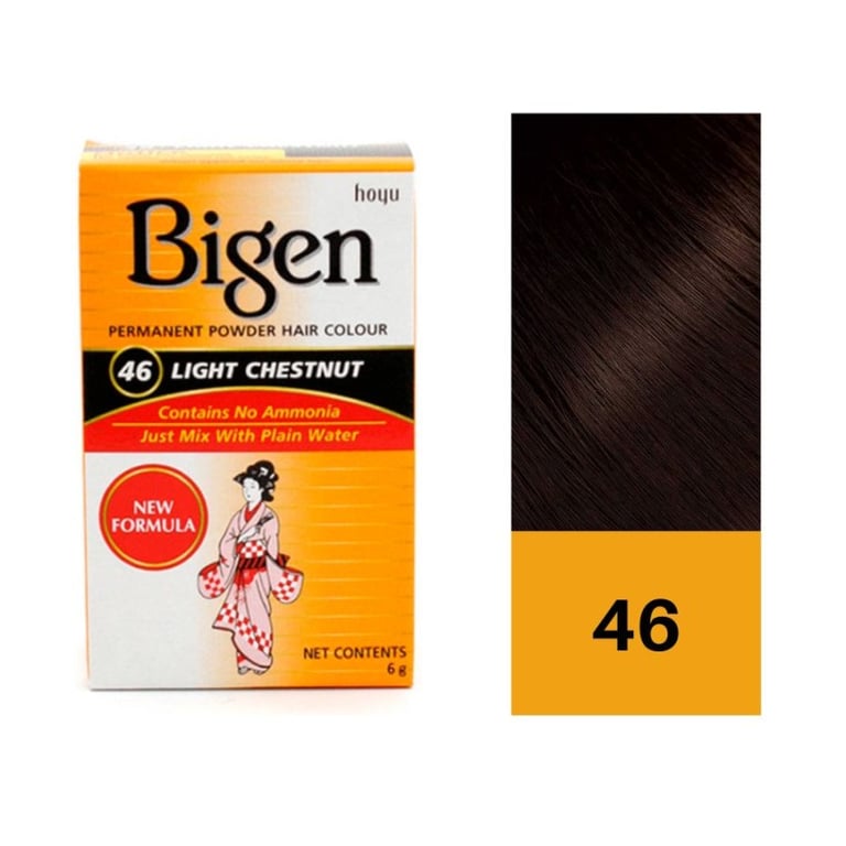 La tinta permanente in polvere borgogna di Bigen, nel confezione da 6 g, offre una copertura totale dei capelli bianchi senza ammoniaca, un colore intenso e duraturo e un'applicazione semplice per tutti i tipi di capelli, grazie alla sua formula in polvere che si attiva con l’acqua e rispetta la fibra capillare, fornendo una lucentezza eccezionale.