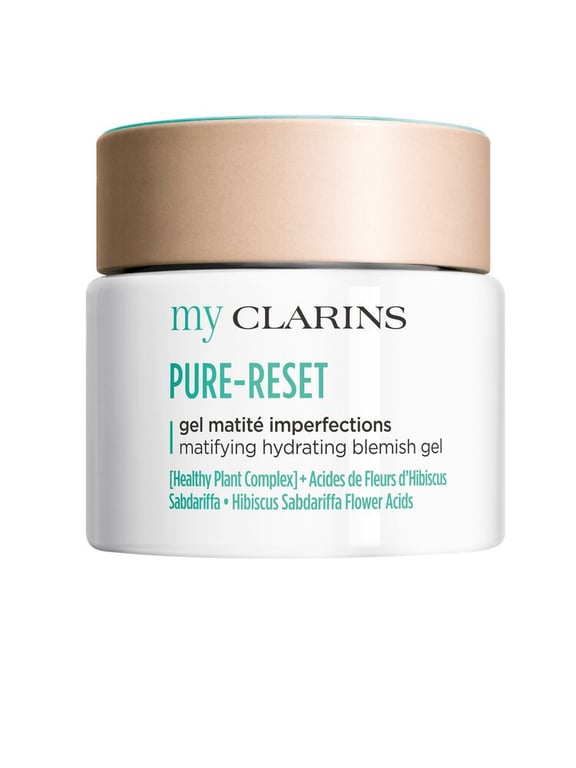 My Clarins Pure-Reset Gel Matité Imperfections è un gel opacizzante progettato appositamente per pelli giovani con tendenza all'oleosità e propense a imperfezioni. La sua formula innovativa combina il potere del Healthy Plant Complex, composto da acqua di cocco biologica ed estratto di rosa delle Alpi, per promuovere una pelle radiosa e sana. Inoltre, arricchito con acidi del fiore di Hibiscus sabdariffa, questo gel offre una texture fresca e leggera che si assorbe rapidamente, lasciando un effetto diffuso immediato e una pelle visibilmente più liscia, pulita e opaca.