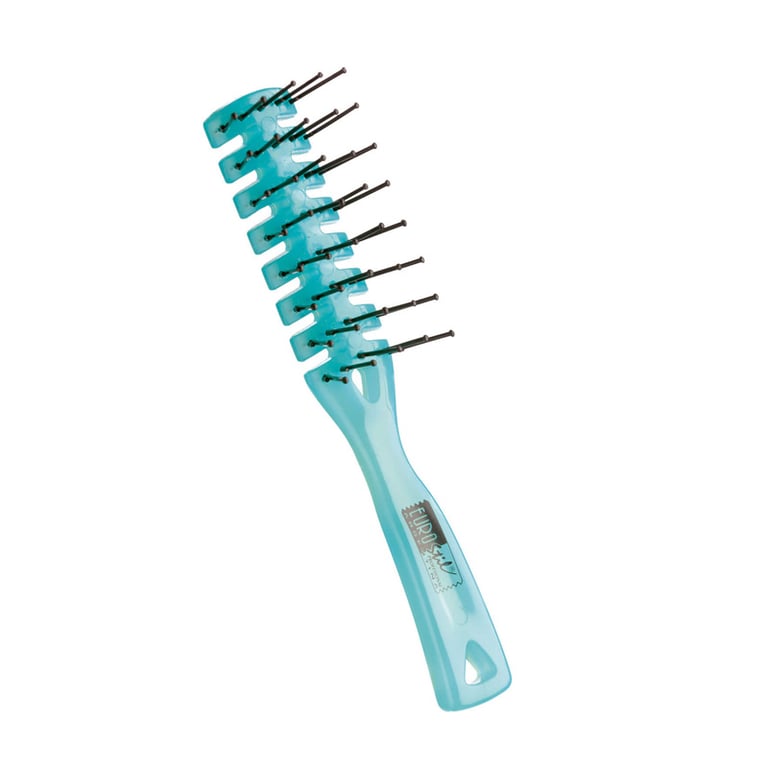 Questa spazzola a ventaglio in nylon Eurostil offre un'acconciatura delicata e morbida, curando la fibra capillare grazie al suo design imbottito e alle punte con piccole sfere che evitano strappi e danni. Ideale per tutti i tipi di capelli, combina materiali resistenti con una presa comoda che facilita la spazzolatura quotidiana.