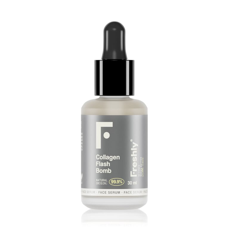 Collagen Flash Bomb è un siero viso ultraconcentrato che dona un'immediata carica di energia alla tua pelle, combattendo i segni di stanchezza e restituendole vitalità. Con una formula naturale a base di collagene idrolizzato di origine biotecnologica, questo trattamento è 100% vegano e perfettamente compatibile con la pelle umana, aiutando a rassodare, rimpolpare e ridensificare il derma. Il suo doppio effetto combina ingredienti attivi che offrono risultati immediati, come l'effetto tensore "flash", e benefici a lungo termine, come maggiore elasticità e tonicità. Ideale per pelli spente e affaticate, questo siero agisce come un potente rigeneratore cellulare che rivitalizza immediatamente il viso.