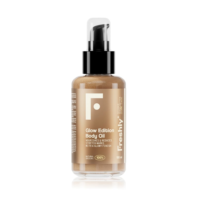 Glow Edition Body Oil è un olio per il corpo 100% naturale progettato per donare luminosità e nutrire in profondità la pelle. Con una formula arricchita da 12 oli vegetali, tra cui marula vergine, babassù biologico, jojoba, macadamia e chia, quest'olio non solo idrata la pelle, ma la mantiene anche morbida, elastica e soda. Le mica minerali nella formula donano un bellissimo effetto glow con riflessi dorati, ideale per una pelle radiosa e con un brillante naturale. Grazie alla sua innovativa tecnologia con microalghe, il prodotto combatte anche le sfide quotidiane della pelle, come disidratazione, invecchiamento precoce, smagliature e cicatrici.