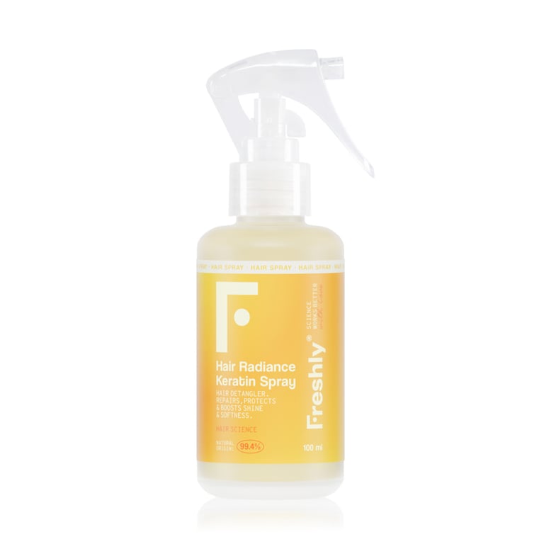 Hair Radiance Keratin Spray è un protettore termico 99,4% naturale che aiuta a proteggere i tuoi capelli dai danni causati dal calore di phon e piastre, facilitando anche il districamento. La sua formula esclusiva, arricchita con cheratina vegetale, nutre la fibra capillare e la rinforza dall'interno, contrastando il crespo e la secchezza. Questo prodotto è ideale per capelli secchi, danneggiati e opachi, poiché ne migliora la resistenza al calore e alla radiazione solare, aumentando al contempo la lucentezza e l'idratazione dei capelli.