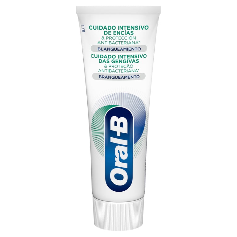 Pasta dentifricia con cura intensiva, dotata di una formula esclusiva ActivGuard che fornisce una riduzione della placca batterica due volte più grande rispetto alla normale pasta dentifricia al fluoro.