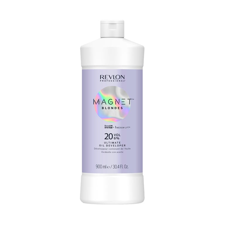 Formula al 6% (20 vol.) per una schiaritura ottimizzataFormato in olio che facilita l'applicazione e il controlloPresentazione in confezione da 900 ml per uso professionaleLibero da ammoniaca per ridurre il danno alla fibraProgettato per combinarsi con la linea Magnet Blond di Revlon Professional