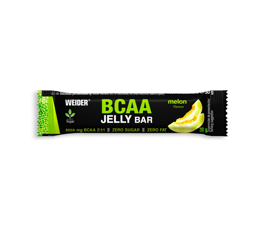 Deliziosa barretta al gusto di melone dalla consistenza gelatinosa, con una quantità totale di 3000 mg di BCAA 2:1:1.