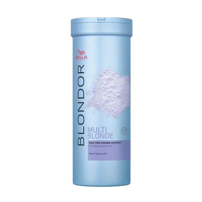 Questo decolorante in polvere Wella Blondor Multi Blonde 7 permette di schiarire fino a sette toni in modo delicato e uniforme, neutralizzando i riflessi gialli grazie alla sua formula complessa arricchita con molecole anti-giallo. La sua consistenza cremosa facilita l'applicazione e, combinato con l'ossidante in crema, offre risultati professionali con un biondo puro e luminoso.
