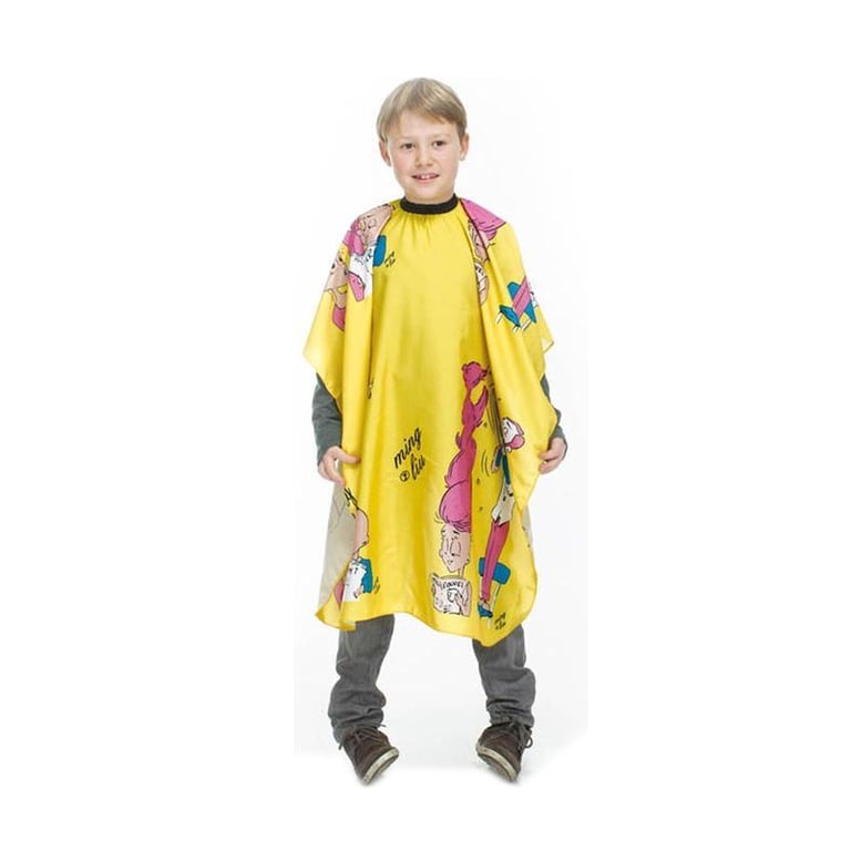 Questa mantella da taglio infantile gialla combina un tessuto satinato di poliestere con un design pensato per i più piccoli, offrendo una regolazione leggera che protegge i vestiti come uno scudo morbido. Ideale per saloni e parrucchieri a casa, facilita il taglio mantenendo i capelli in ordine senza creare fastidi, e si pulisce facilmente.